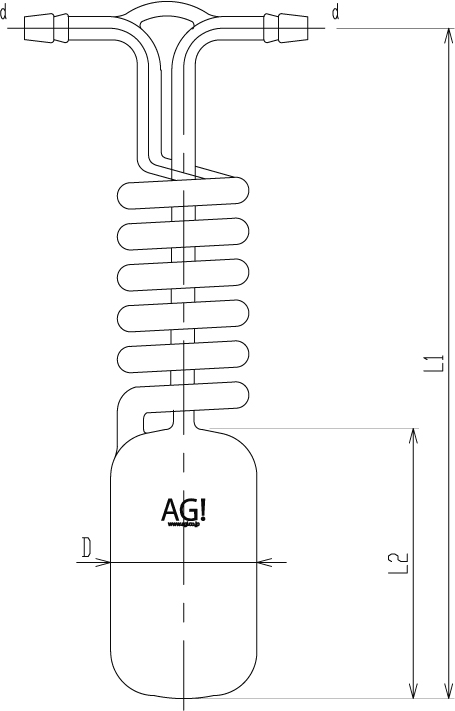 凝縮トラップは低沸点溶媒の回収用トラップです。べーパーを蛇管部に通すことにより冷却面積を広げ、回収効率を高めています。